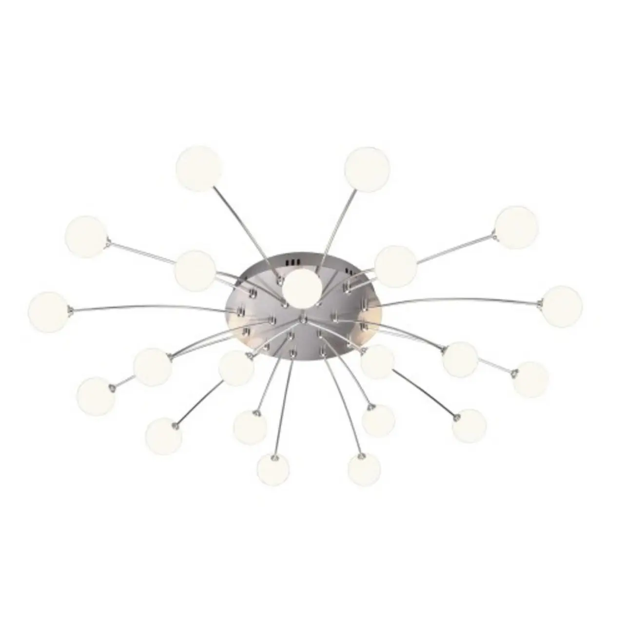 Producent: 641412107Parametrywysokość (mm): 155wysokość klosza (mm): średnica (mm): 965średnica klosza (mm): szerokość (mm): głębokość (mm): ilość źródeł: 21rodzaj LED zintegrowanymax moc źródła: 1 Wnapięcie: 230 Vźródło w 21 x LED 1 W, 170 lm, 3000 Kmożliwość ściemniania: Tak, za pośrednictwem typowego łącznika ściennego.kolor: srebrny i odcienie srebramateriał: metal/szkłoIP: 20