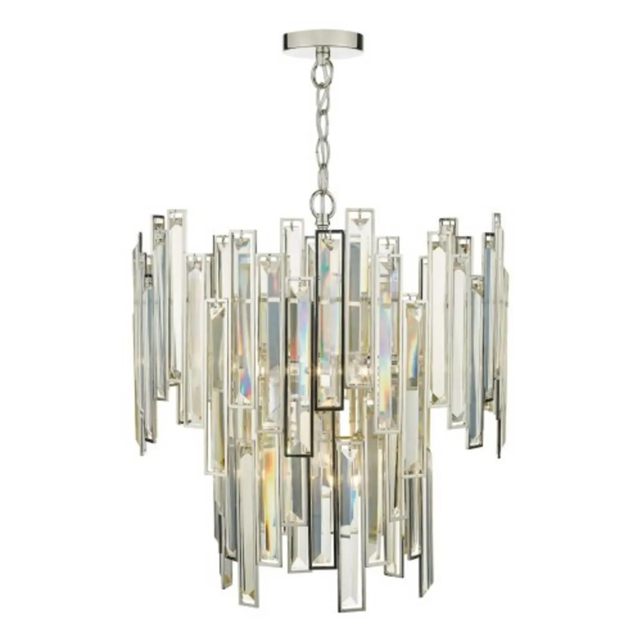 Kolekcja: ODILEMateriał Metal, KryształKolor Fasetowany kryształ w kolorze szampanaTrzonek G9Liczba źródeł światła: 6Napięcie 230VStopień ochrony (IP): IP20Źródło światła w NieŹródła światła TakMoc źródła światła: 40WWysokość: 57cmRegulowana wysokość: 57cm – 150cm