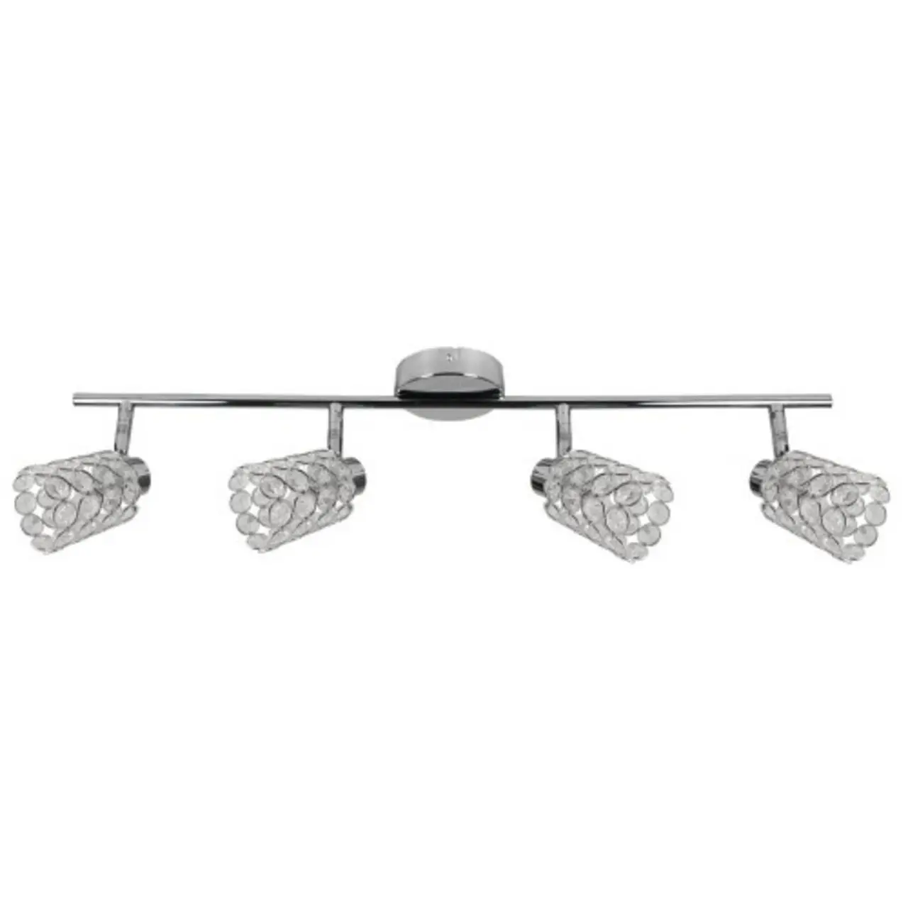 dla wielbicieli kryształów – niezwykle dekoracyjne walcowe klosze metalowe efektownie zdobione drobnymi kryształkami; wysoka transparentność kloszy zapewnia maksymalne wykorzystanie mocy źródła światła; w standardzie możliwość regulacji kąta nachylenia kloszy w pionie i poziomie; niezastąpione dla podkreślenia elegancji tradycyjnego pokoju dziennego, przedpokoju a nawet salonu;Materiał: klosz metal z kryształkami, podstawa metalowaKolor chromowyWysokość: 17Szerokość: 74Głębokość: 8Wymiary (wys/szer/gł): 17x74x8Waga (netto): 1,00Led NieIlość źródeł światła: 4Zawiera źródło światła: NieIlość źródeł x 4xG9